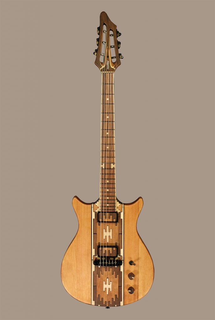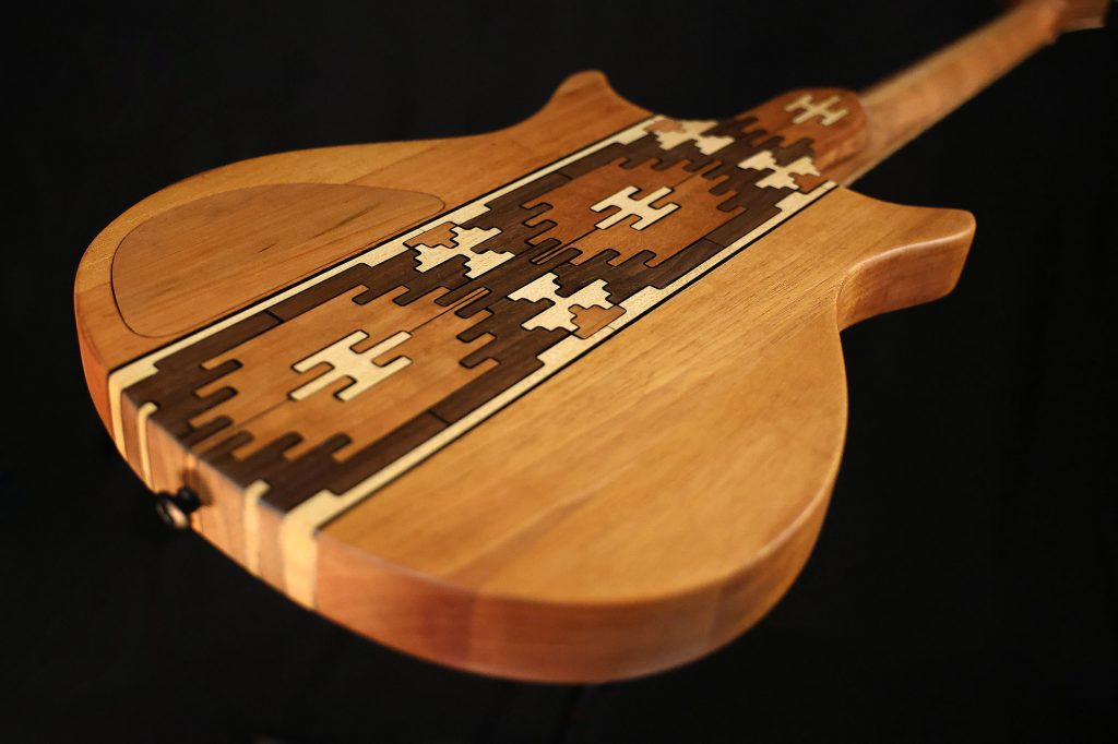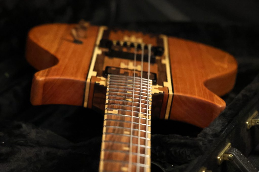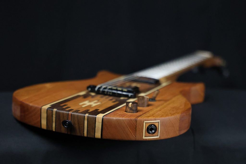 Reinforced Neck: Carbon fiber-reinforced Mahogany neck with Maple inlays for superior stability. Slotted Mahogany headstock with a Walnut top.